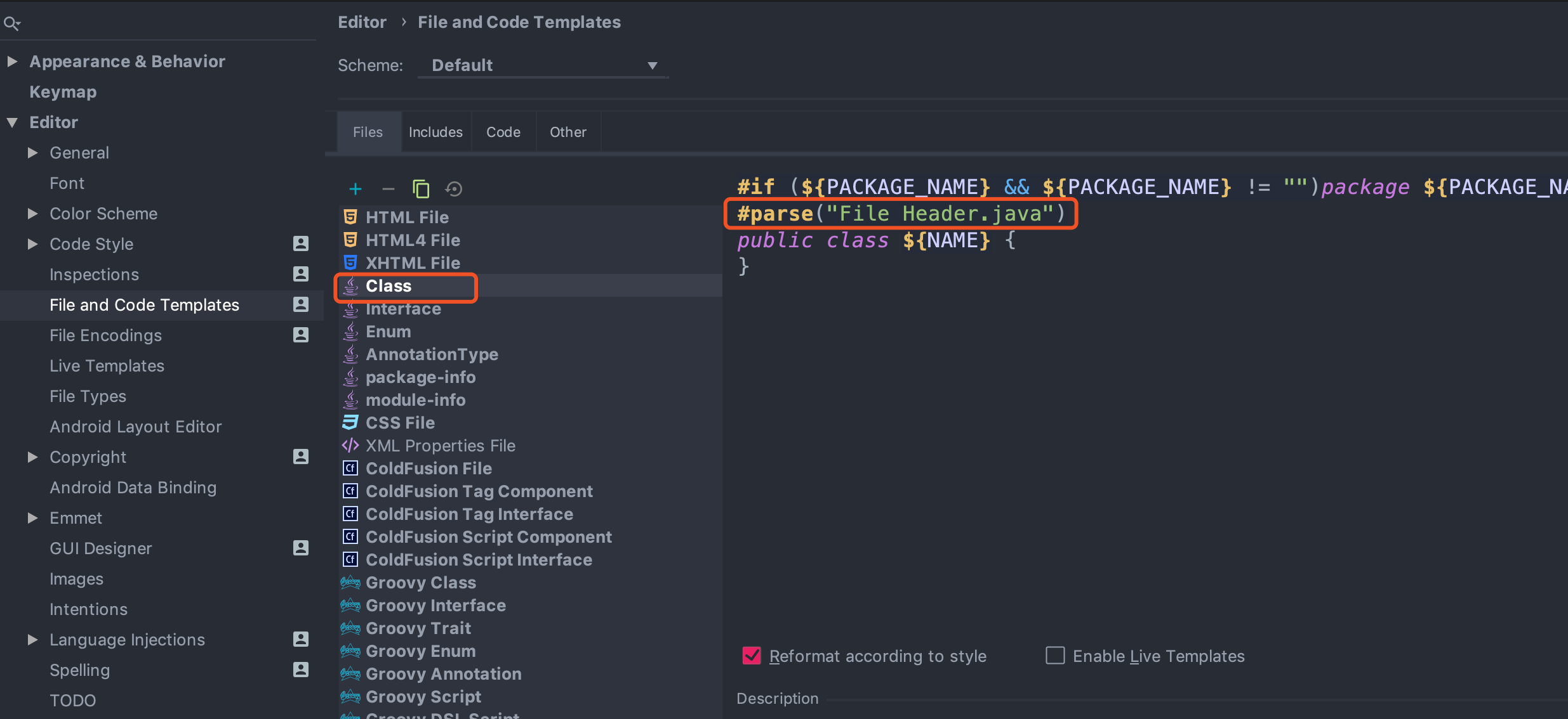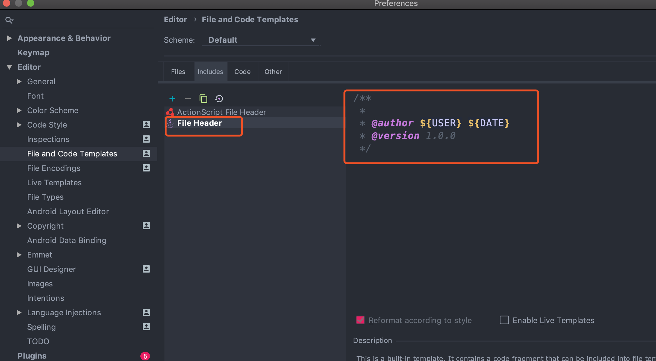 上面的FileHeader.java可以定义为通用的文件注释,还可以增加版权信息等