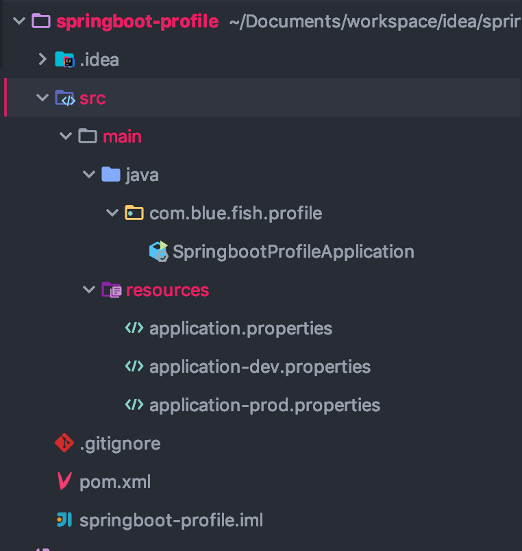日常开发工作中,开发和生产环境是隔离的,那么对应的各种配置数据也是不一样的,SpringBoot提供了不同环境的配置数据管理,比如当前目录结构下有两套配置文件,如图: